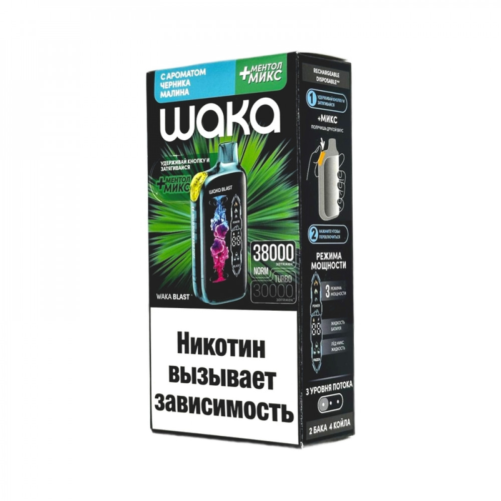 WAKA BLAST 38000 Hard - Черника малина + ментол микс - купить в Гремячинске